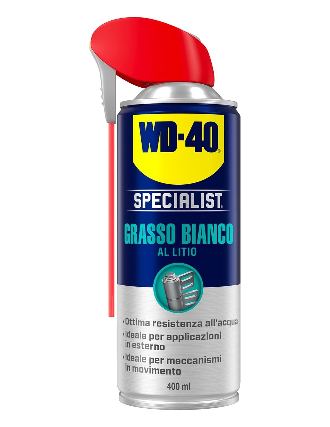 Lithium White Grease, with its dense formula, provides long-lasting lubrication. It does not drip and remains adherent to the surface. It reduces the friction coefficient and facilitates the operation of moving metal parts. Available with the Dual Position System, which allows you to switch from wide spraying to precise application in a single movement.