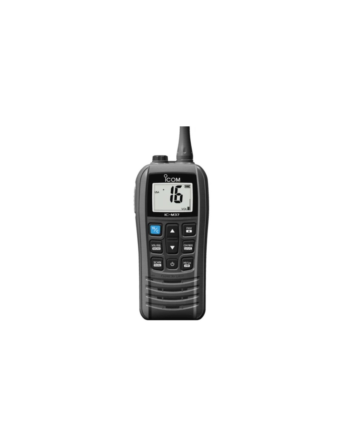 The IC-M37E handheld VHF radio features a flat design, large buttons and excellent sound quality, making it easy to use. Its low-power circuitry provides more than 12 hours of operation and the channel history function stores the last five channels for easy call repetition.