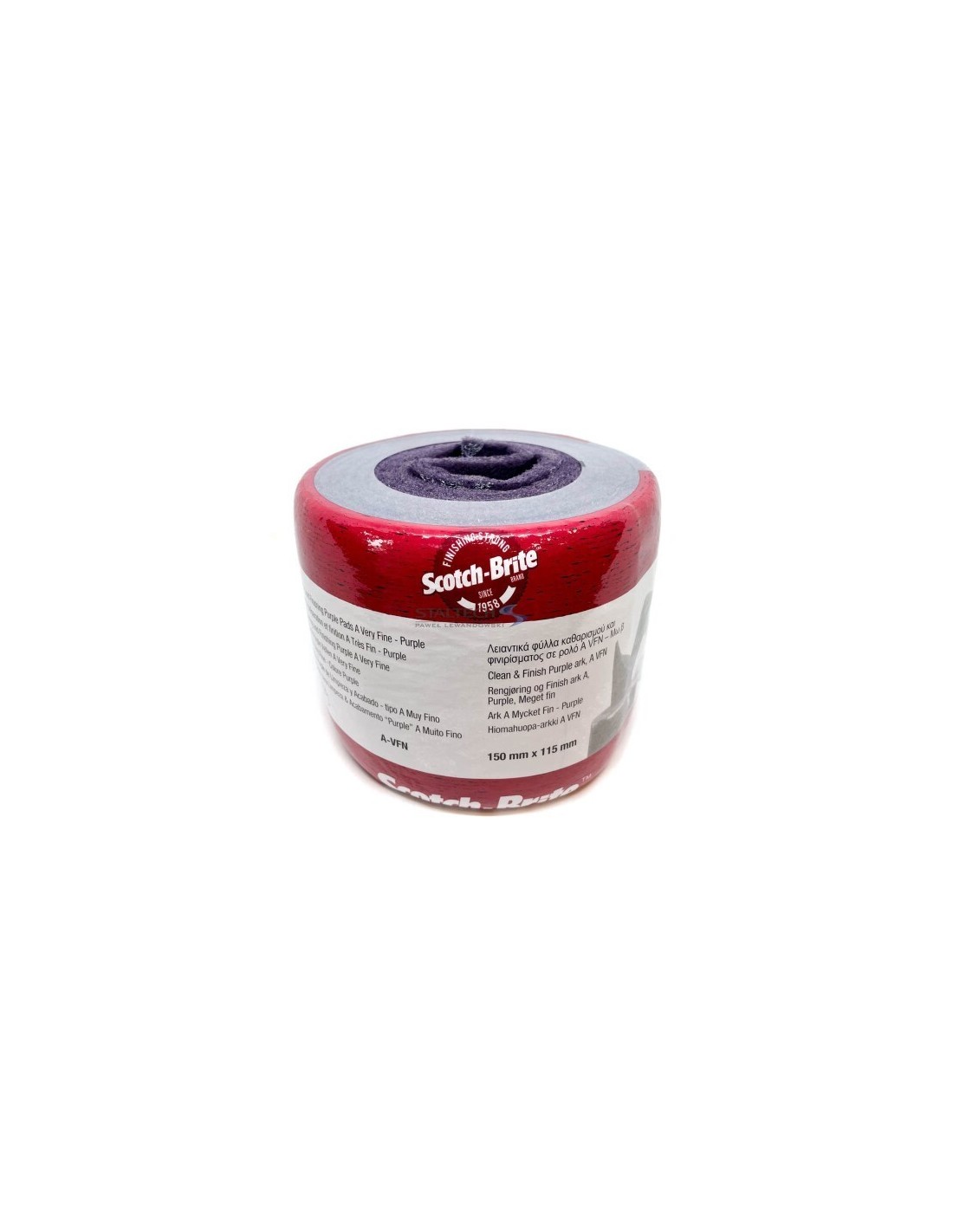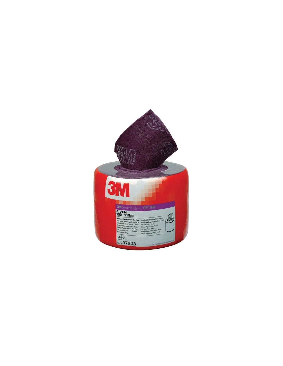 itamponi abrasivi 3M 07903 Scotch-Brite di colore viola sono fogli di vello abrasivo perforati, ognuno dei quali misura 115x150 mm. I tamponi abrasivi pretagliati 3M 07903 sono confezionati in 36 pezzi su un rotolo di vello abrasivo. Questi pad di levigatura in tessuto non tessuto sono ideali per la levigatura di angoli e spigoli vivi. Il vello abrasivo assorbe la pressione durante la levigatura manuale di aree, angoli e spigoli vivi.