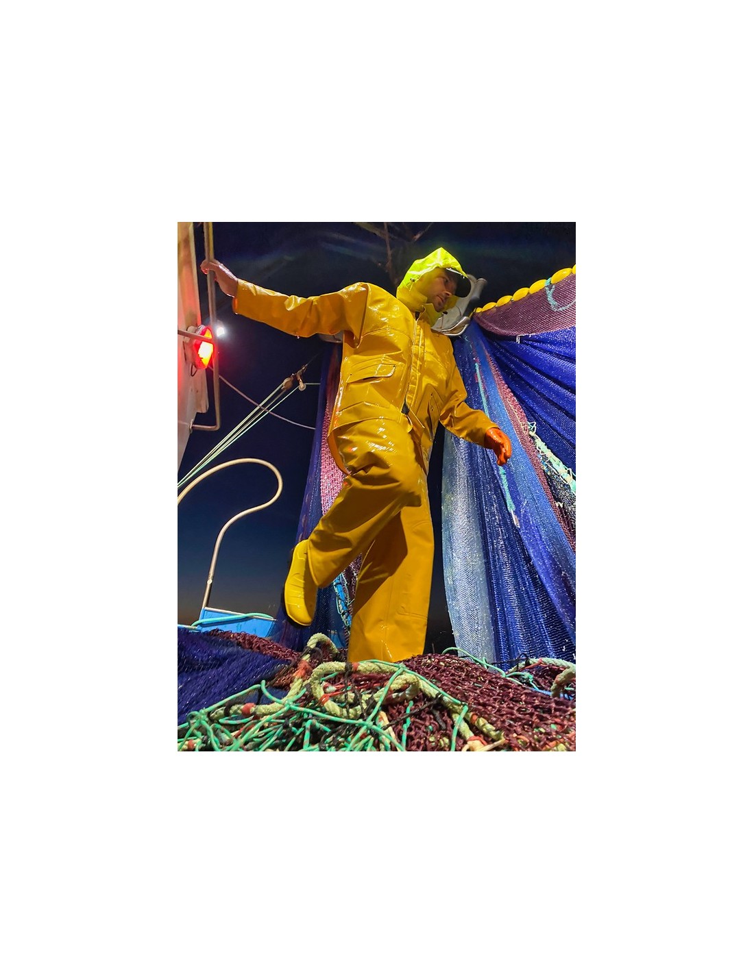 Molto resistente. Le caratteristiche tecniche del tessuto Nylpeche garantiscono capi completamente impermeabili, ineguagliabili per resistenza e flessibilità. Rivestimento in PVC su entrambi i lati, facile da pulire. Ideale per usi intensivi e anche “aggressivi”. 485 g/m².